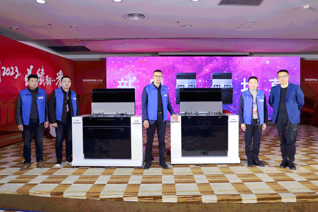 年會(huì)上,北斗星重磅發(fā)布了4大系列集成廚電新品和1款燃熱新品,成團(tuán)出道。