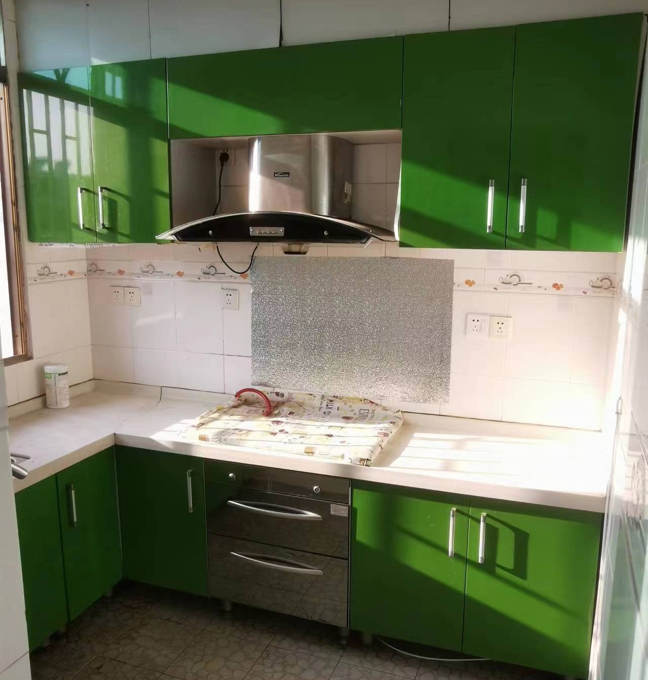話不多說,我們先來看一下改造之前的廚房吧。老套的廚房搭配,綠色真的很老氣,瓷磚發黃發黑,油煙機陳舊損壞、裝修布局過時......這樣的廚房你還會有下廚的欲望嗎?